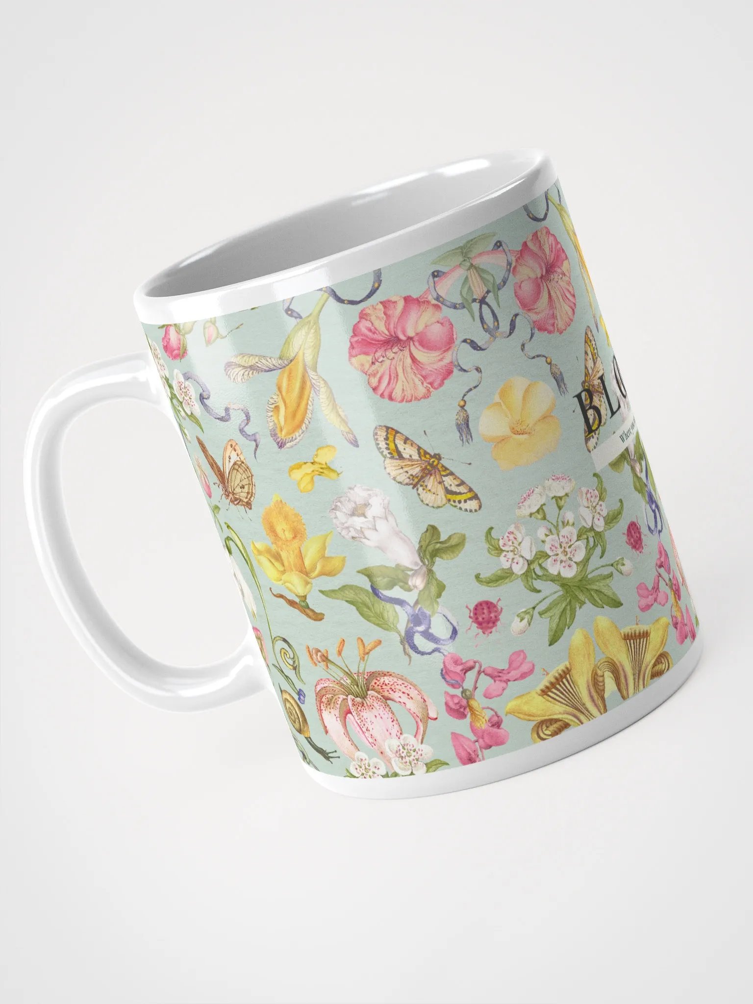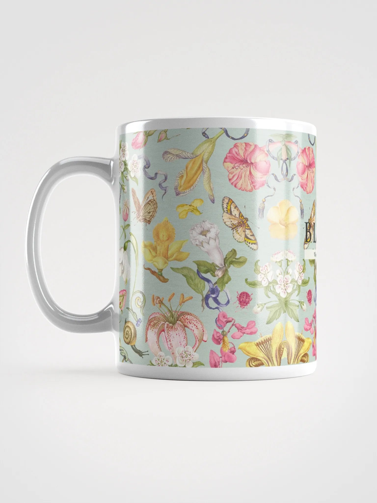 "Bloom Where You Are Planted" Mint Floral Wallpaper Glossy Mug