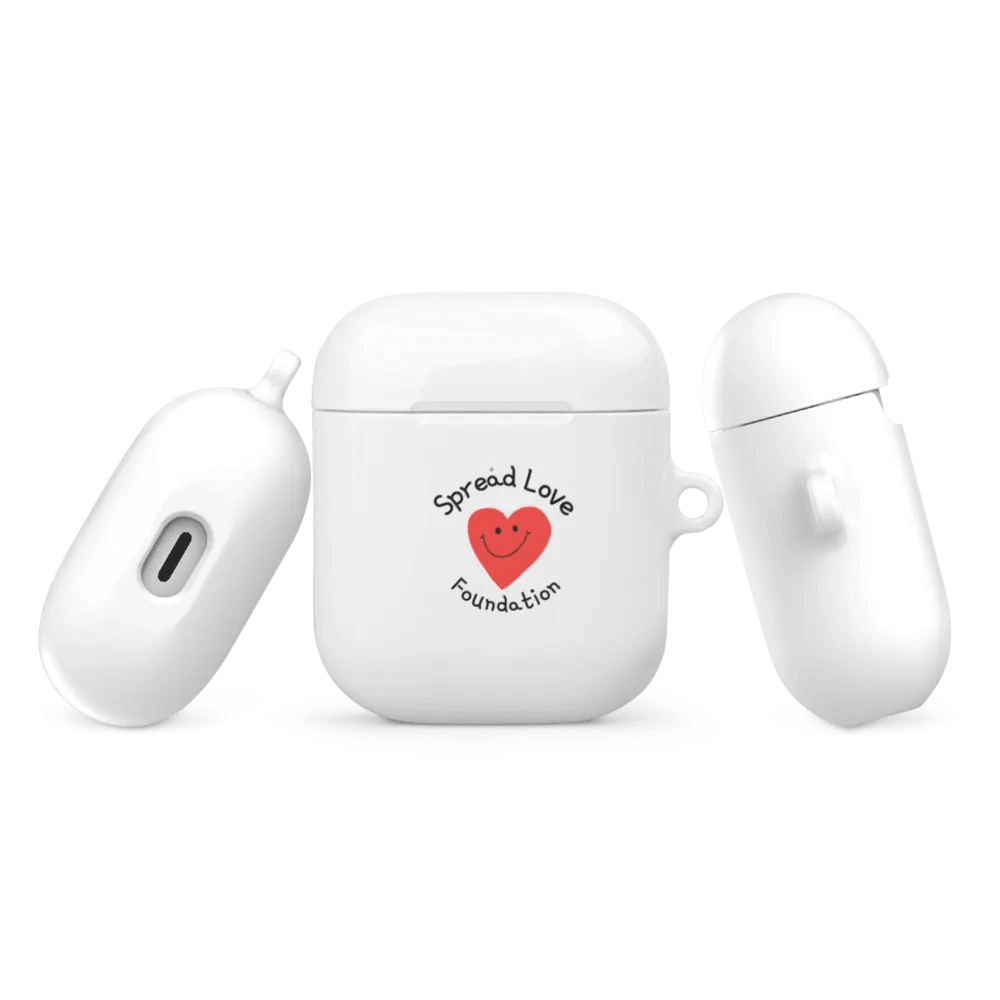 Spread love and joy with our "Spead Love Foundation" All-Over Print Case for AirPods®. Premium impact-absorbing material protects from bumps and scratches. Complete with a metal carabiner for easy carrying. Compatible with wireless and regular chargers.
